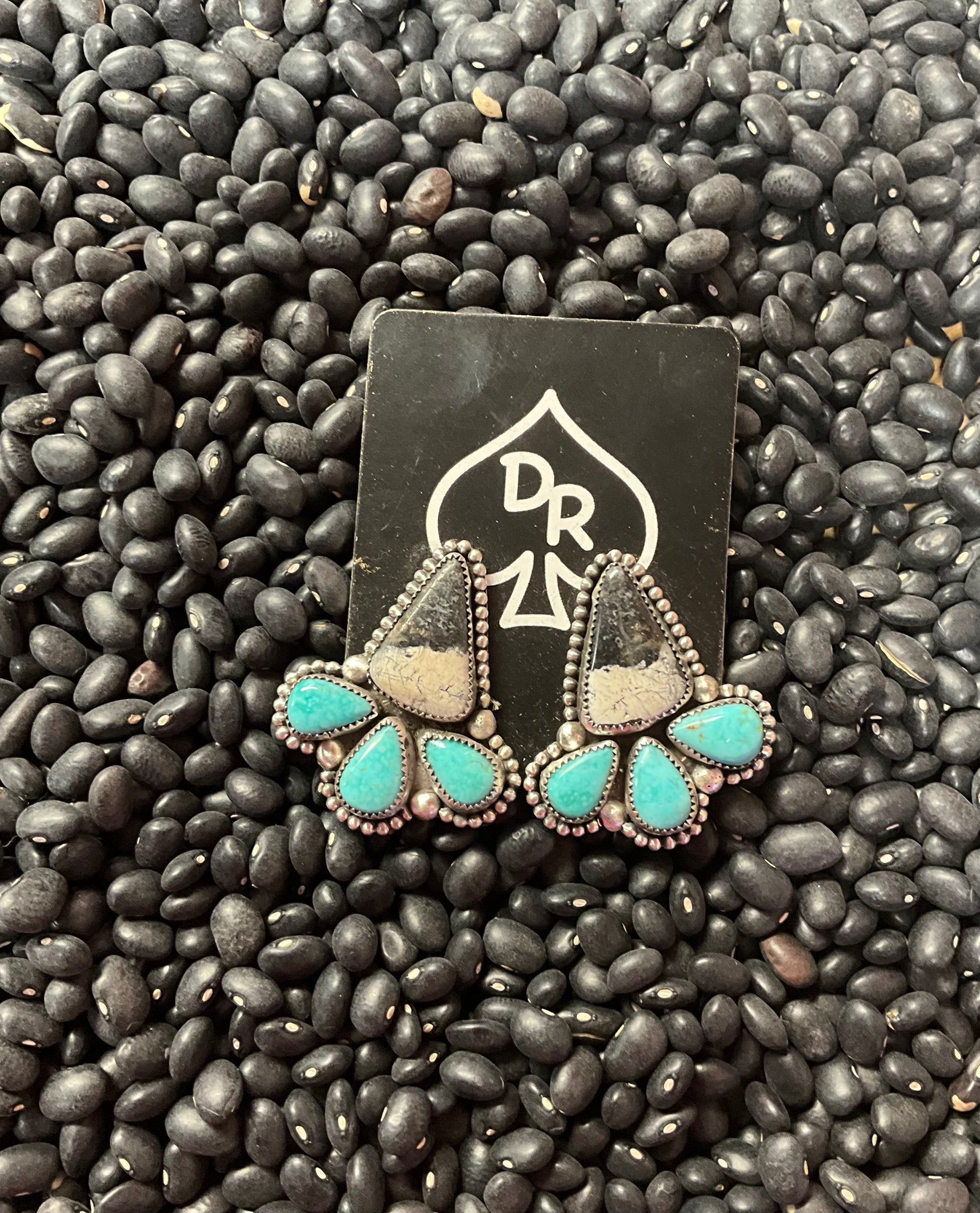 Sterling Silver - White Buffalo with Turquoise Accent Stones - Made by DR Silversmith
